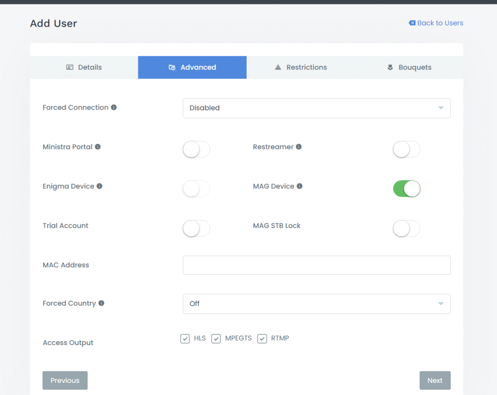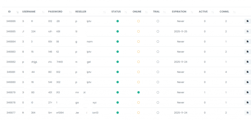 - Groups: Super Resellers, Resellers, Sub Resellers and assign permissions like Allowed Trials, Can Create Sub Resellers, Can View VOD/Series, Can Download Playlist, Can View Users List and so on