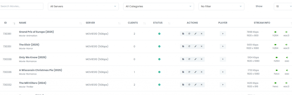 - Streams Tools: Mass edit DNS, Mass Edit URL, Movie Streams to another server, Clean Up Database